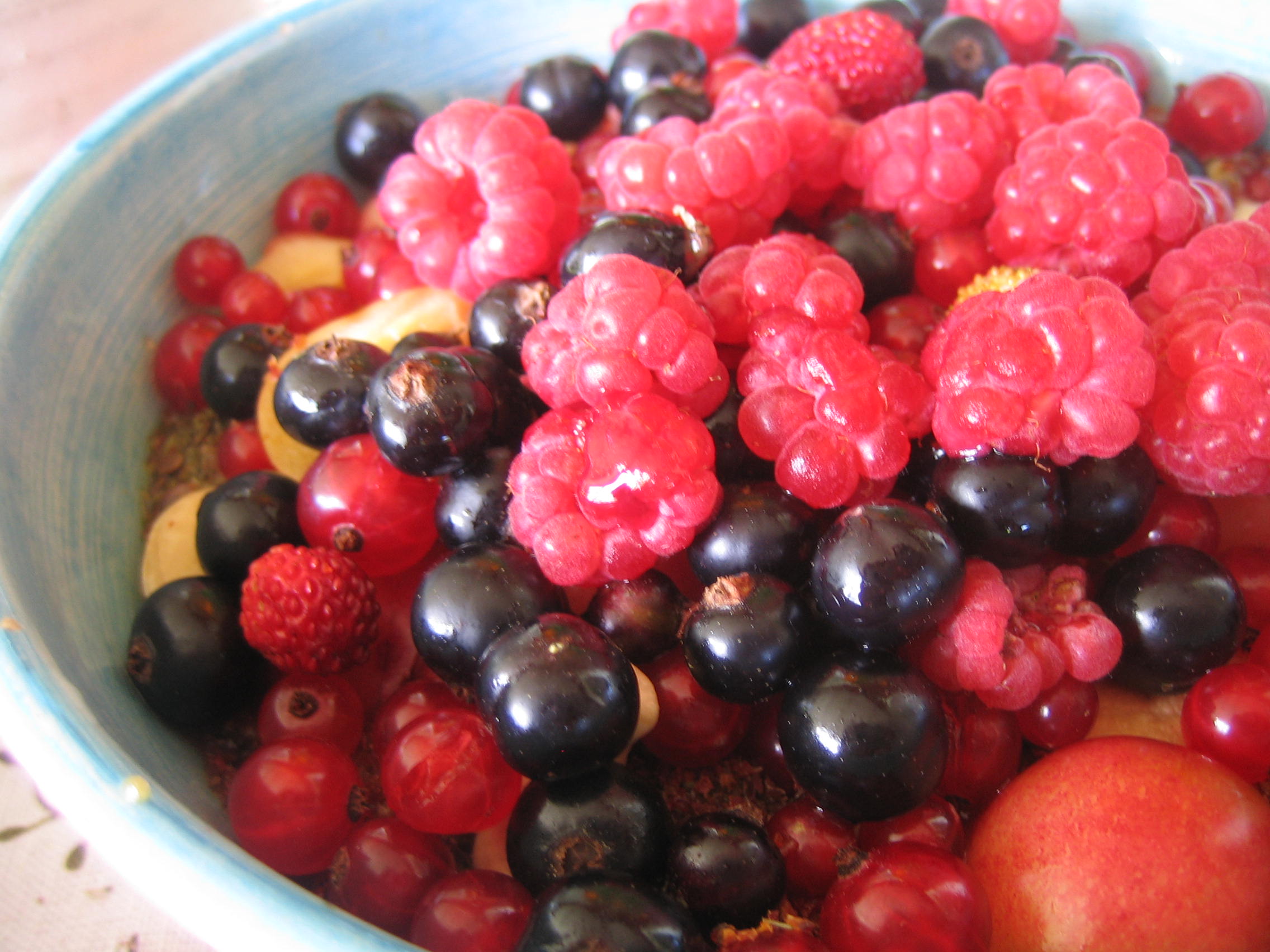 (here: raspberries, wild strawberries, cherries, redcurrants, blackcurrants).